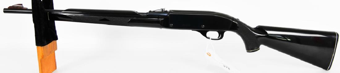 The nylon 66 is a semi auto 22 rifle with a 19 5 8 barrel open sights and a 14 round tube magazine in the buttstock.